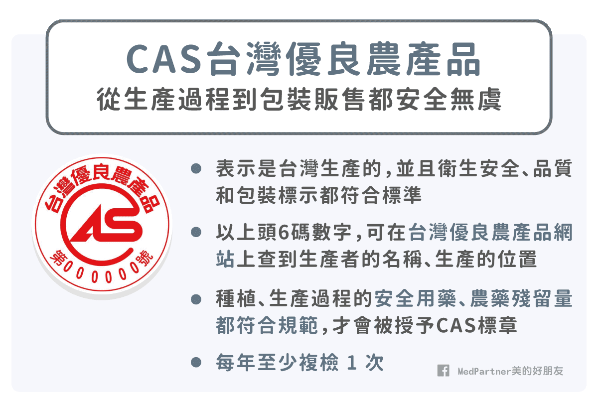 - 有 CAS 標章也是農藥殘留量合格,並且從生產過程到包裝販售,都經過檢驗確認安全。